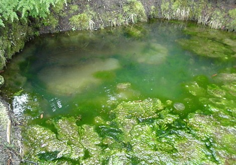 The land looks good. I saw an old vehicle track in the last remains of snow on the north-facing access road, and a couple aluminum cans. And a door had been opened on one of the junked cars. So I had uninvited visitors, but as far as I could see, they didn't steal or damage anything. The land is wet! The trail through the bottomlands is a little stream, and the holes I dug for the pecan trees were both full of water. There's a magnificent algae bloom in the spring pool, with incredible bright green color and giant milky balloon membranes around where the water comes up. It actually looks even greener than this!